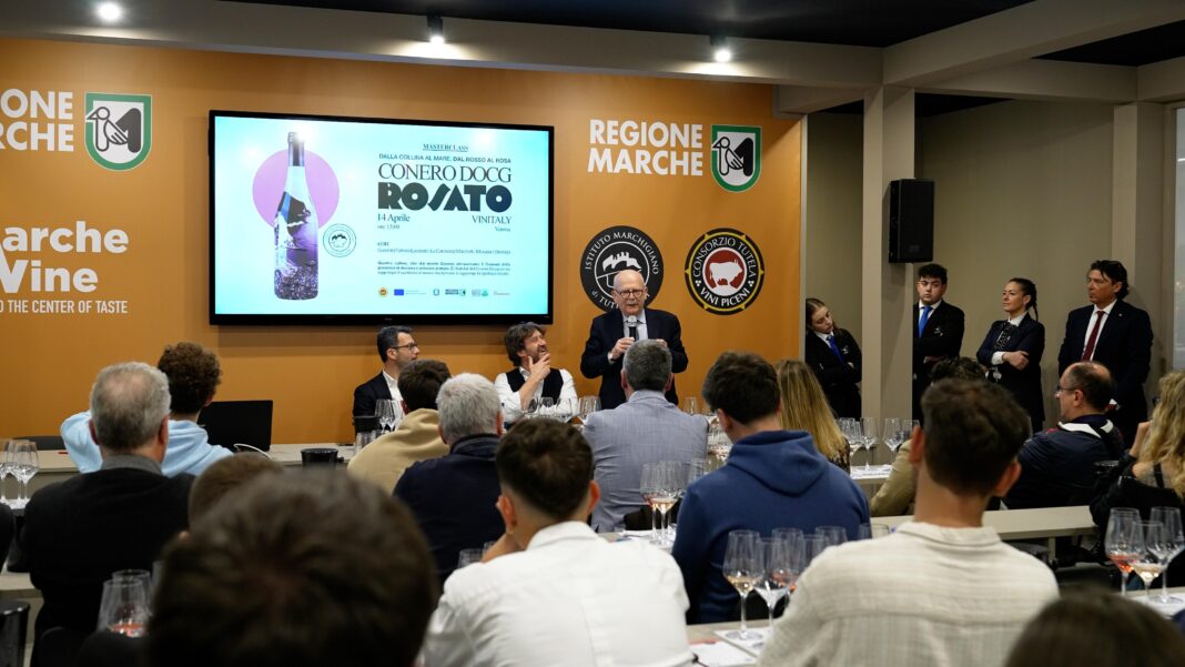 Il Conero Docg Rosato è stato protagonista del brindisi istituzionale in Terrazza Marche con il presidente del Consiglio, Giorgia Meloni, i ministri Francesco Lollobrigida (Agricoltura) e Gianmarco Mazzi (Turismo), il governatore delle Marche, Francesco Acquaroli, e il vicepresidente e assessore all’Agricoltura, Enrico Rossi. A seguire, la presentazione in Sala Raffaello per operatori del settore e stampa nella masterclass “Dalla collina al mare, dal Rosso al Rosa: Conero Docg Rosato”, condotta dal direttore di Vinonews24, Giambattista Marchetto.