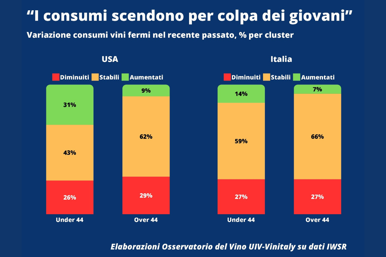 RIBALTATI I LUOGHI COMUNI: IN ITALIA E USA GLI UNDER 44 ARGINANO IL CALO DEI CONSUMI E VEDONO IL VINO COME STATUS SYMBOL. IN RITIRATA GLI OVER44